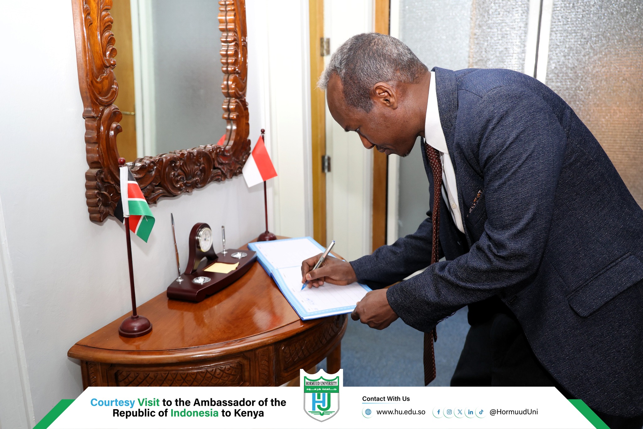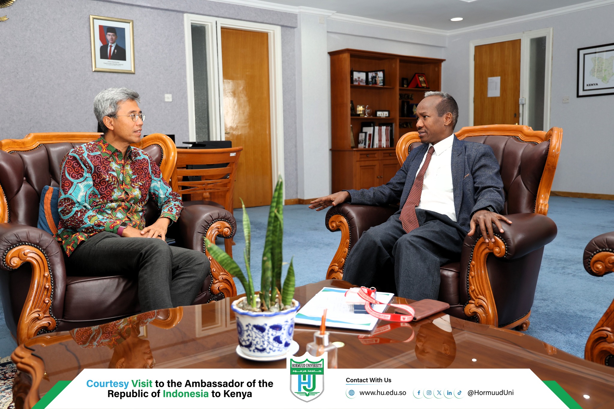 The Vice-Chancellor of Hormuud University, ๐๐ซ๐จ๐Ÿ. ๐ƒ๐ซ. ๐€๐›๐๐ข ๐Ž๐ฆ๐š๐ซ ๐’๐ก๐ฎ๐ซ๐ข๐ฒ๐ž, paid a high-level courtesy visit to ๐‡๐ข๐ฌ ๐„๐ฑ๐œ๐ž๐ฅ๐ฅ๐ž๐ง๐œ๐ฒ ๐Œ๐ซ. ๐“. ๐. ๐‡. ๐—ช๐ข๐ญ๐ฃ๐š๐ค๐ฌ๐จ๐ง๐จ ๐€๐๐ฃ๐ข, ๐€๐ฆ๐›๐š๐ฌ๐ฌ๐š๐๐จ๐ซ ๐จ๐Ÿ ๐ญ๐ก๐ž ๐‘๐ž๐ฉ๐ฎ๐›๐ฅ๐ข๐œ ๐จ๐Ÿ ๐ˆ๐ง๐๐จ๐ง๐ž๐ฌ๐ข๐š ๐ญ๐จ ๐Š๐ž๐ง๐ฒ๐š, to advance a bold initiative aimed at forging durable academic, institutional, and people-to-people linkages between ๐€๐Ÿ๐ซ๐ข๐œ๐š and ๐’๐จ๐ฎ๐ญ๐ก-๐„๐š๐ฌ๐ญ ๐€๐ฌ๐ข๐š.