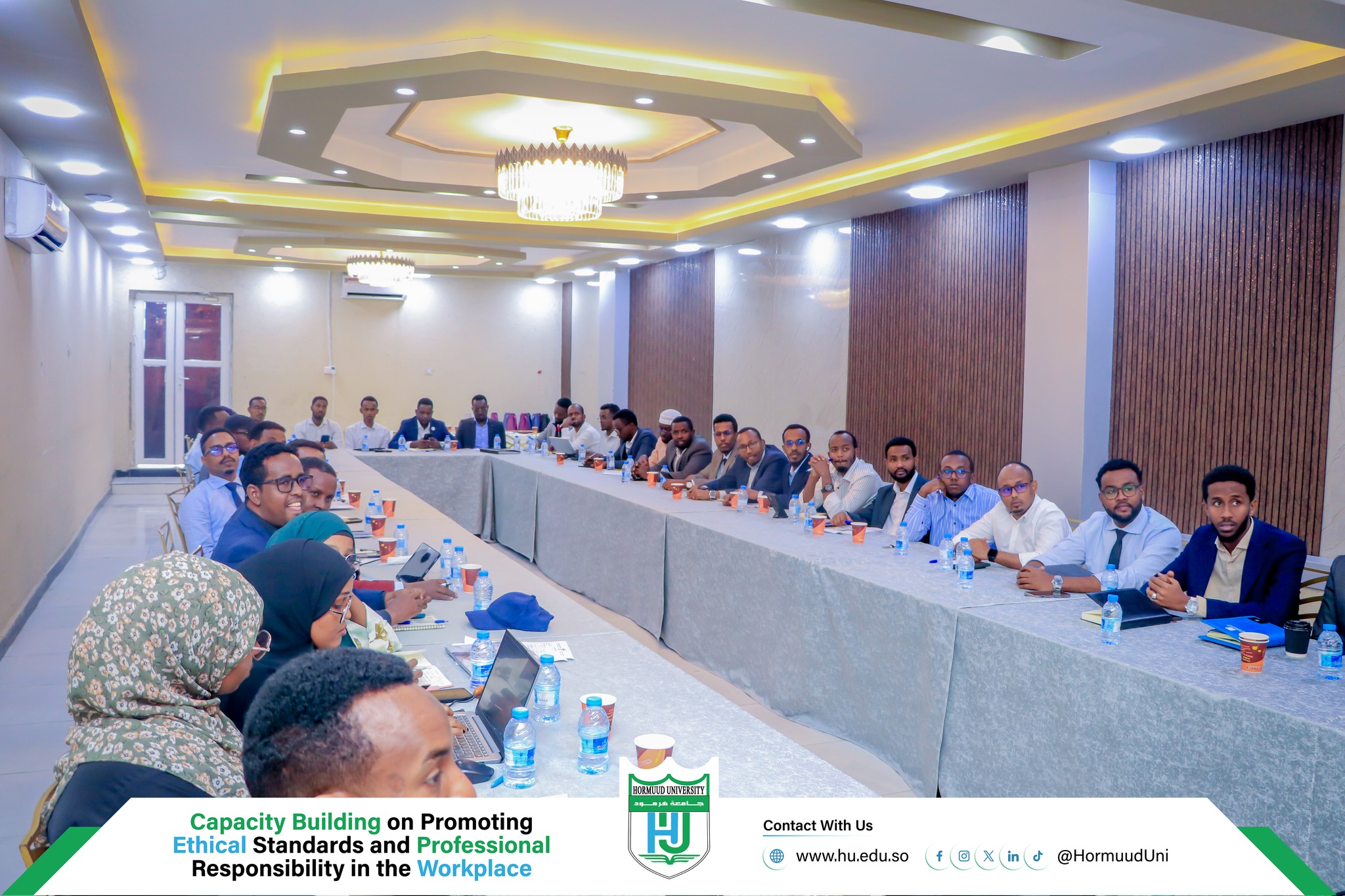 The training focused on strengthening work ethics, upholding professional responsibilities, and fostering a work environment grounded in transparency, trust, and accountability. Hormuud University remains committed to institutional excellence by cultivating a strong ethical culture, enhancing governance practices, and ensuring the delivery of high-quality education aligned with international standards.